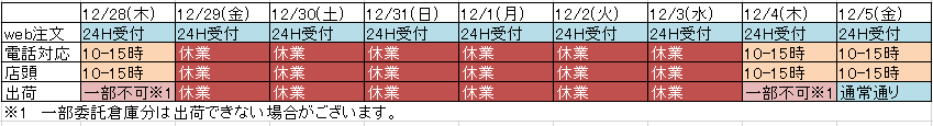 年末年始期間中(12/28〜1/3)の営業について